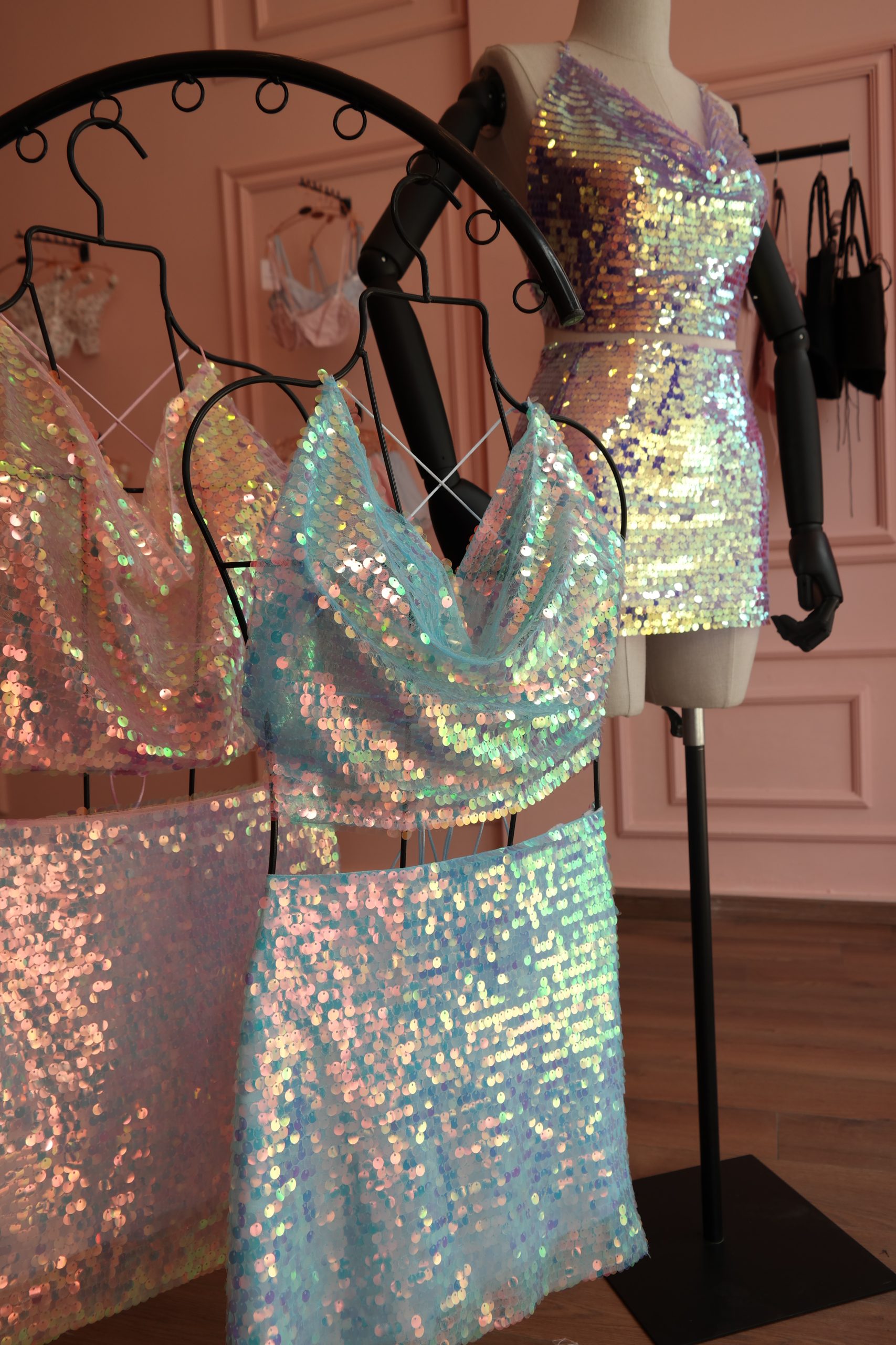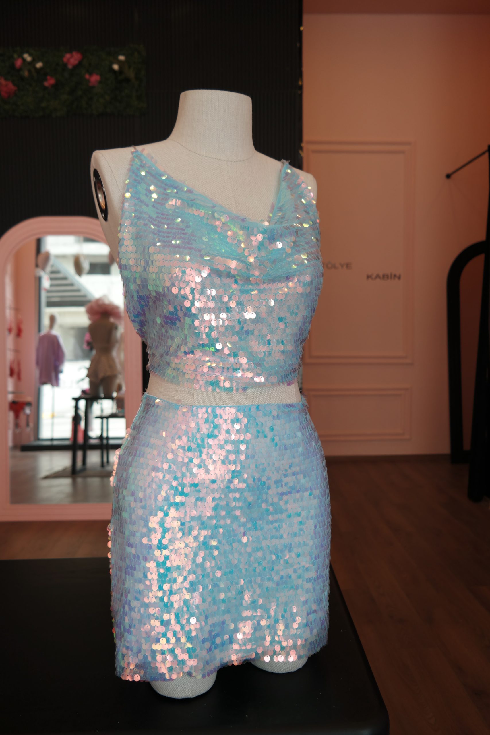Özel tasarım pul payetli etek.