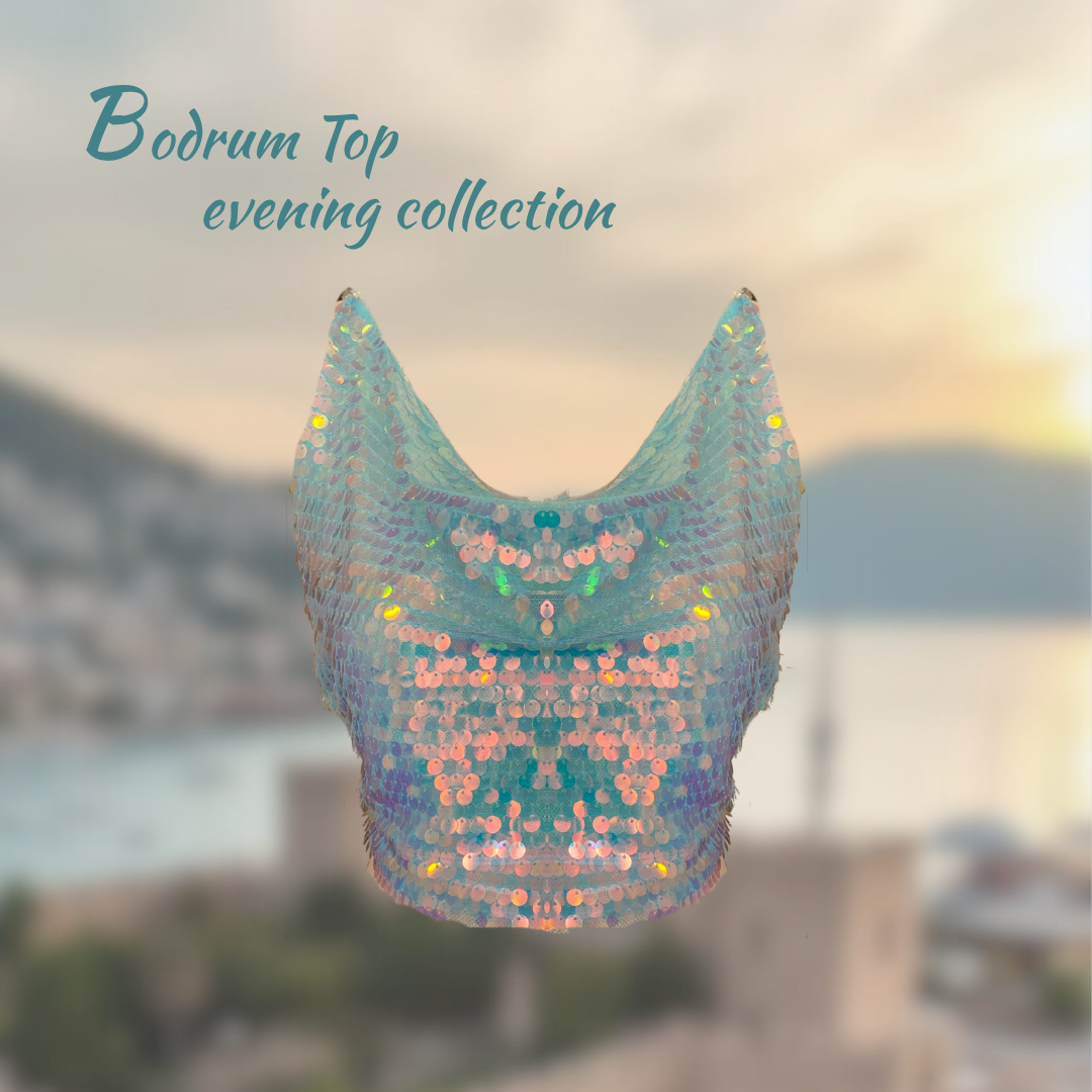 Özel tasarım pul payetli bağlamalı bluz.