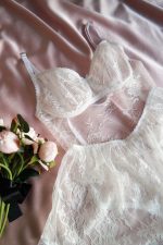 Özel tasarım fransız dantel bodysuit ve fransız dantel şort takım.
