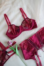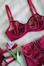 Özel tasarım balenli sütyen. Zarif dantel kumaşın pamuk satenle buluştuğu göz alıcı bordo rengiyle Cherry Sütyen sadece Lesbebes’te.