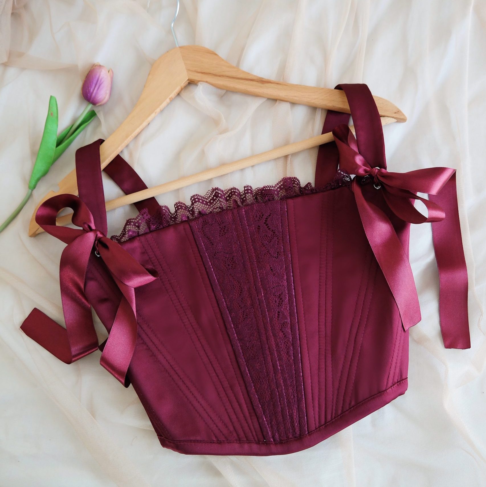 Balenli, kurdeleli ve kuşgözü detaylı korse.