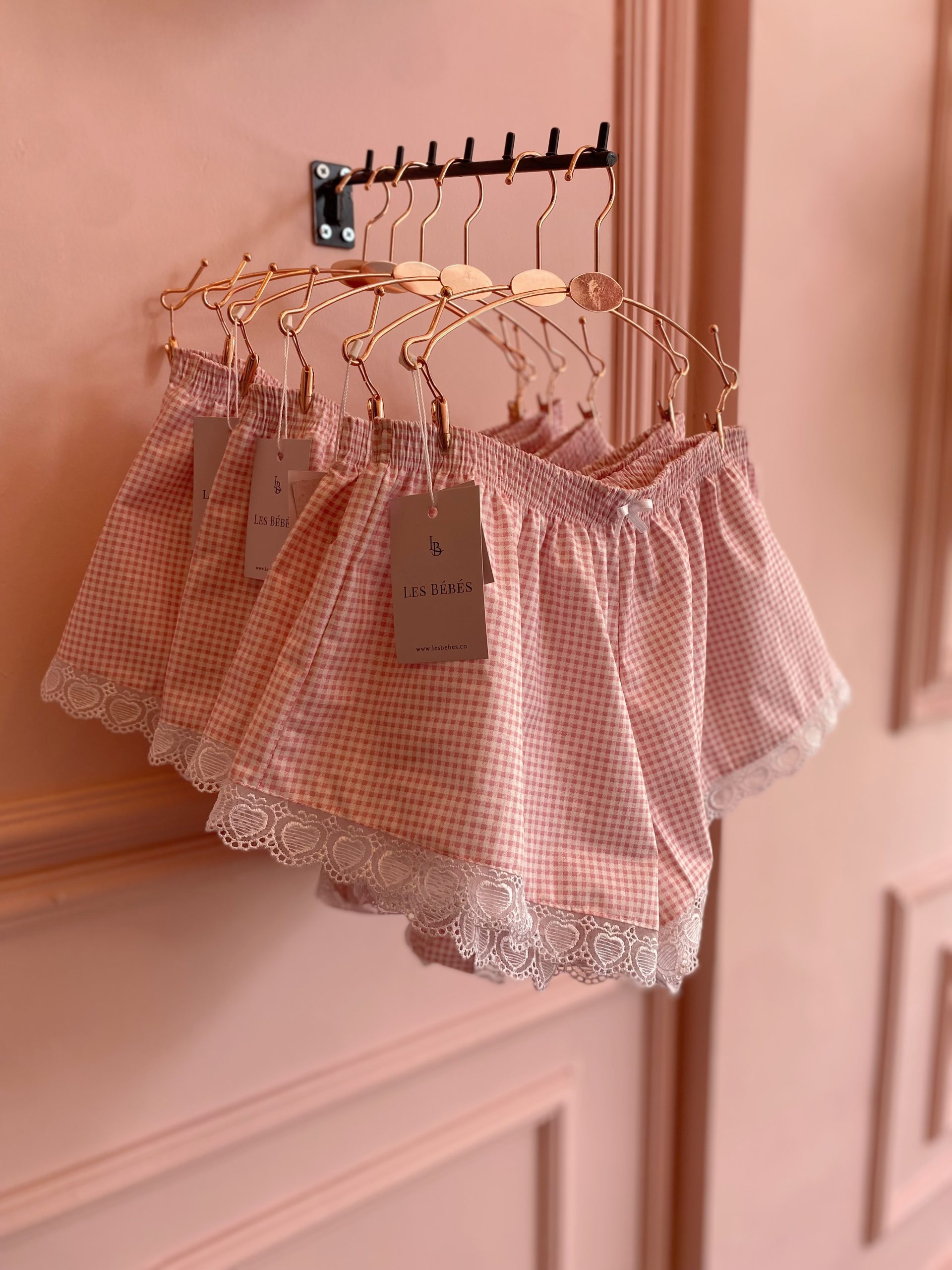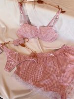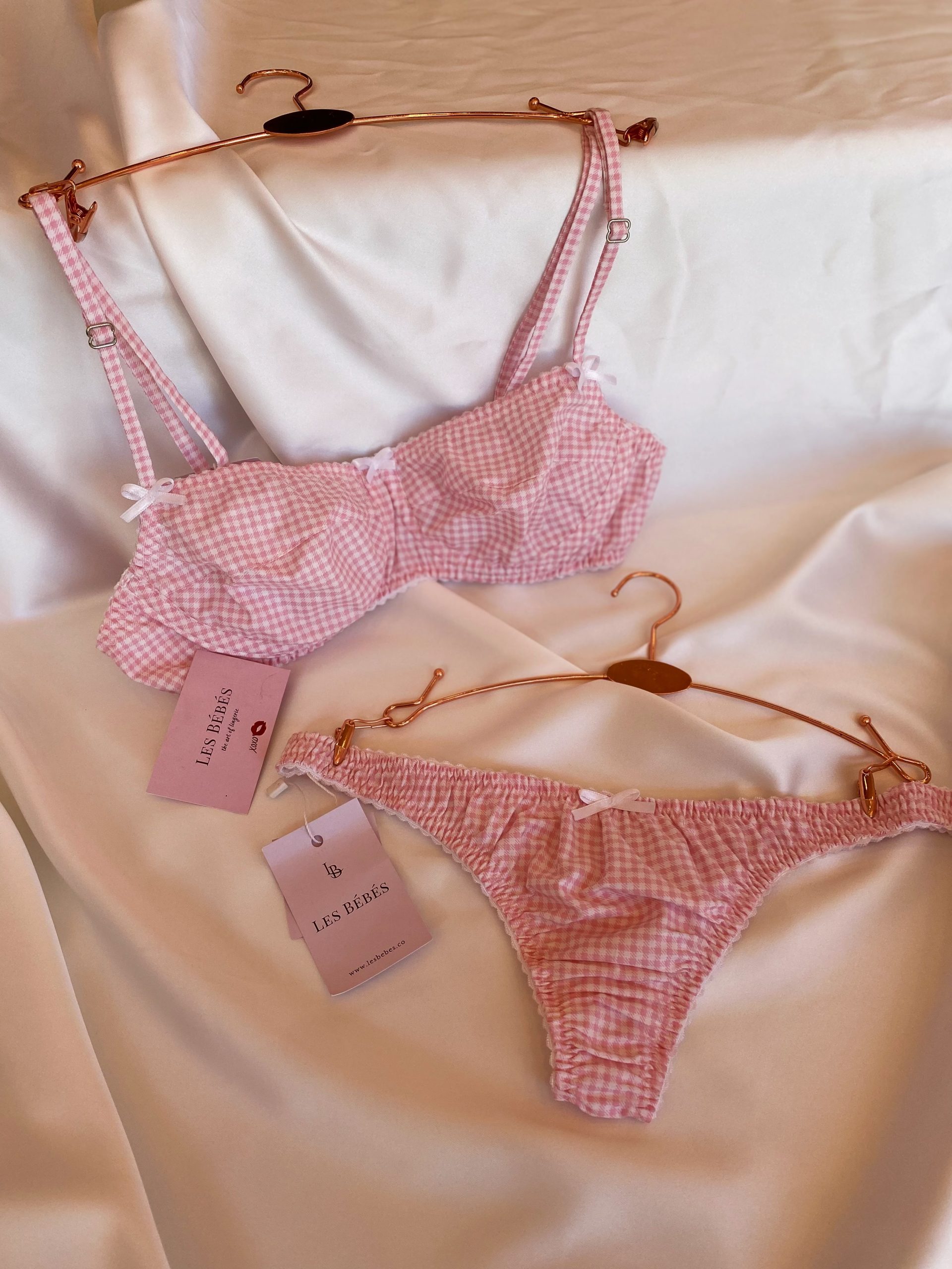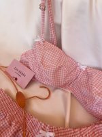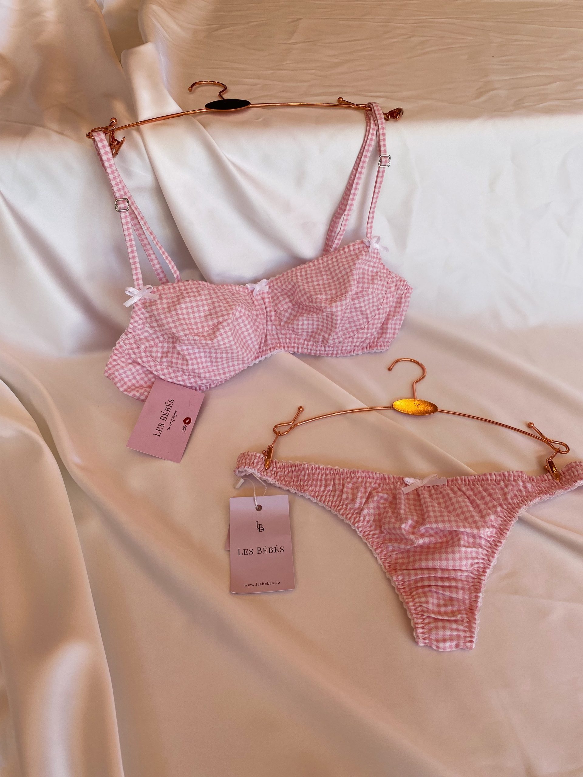 Özel tasarım pamuklu kumaşı ile balenli sütyen, tanga ve şort takımı.