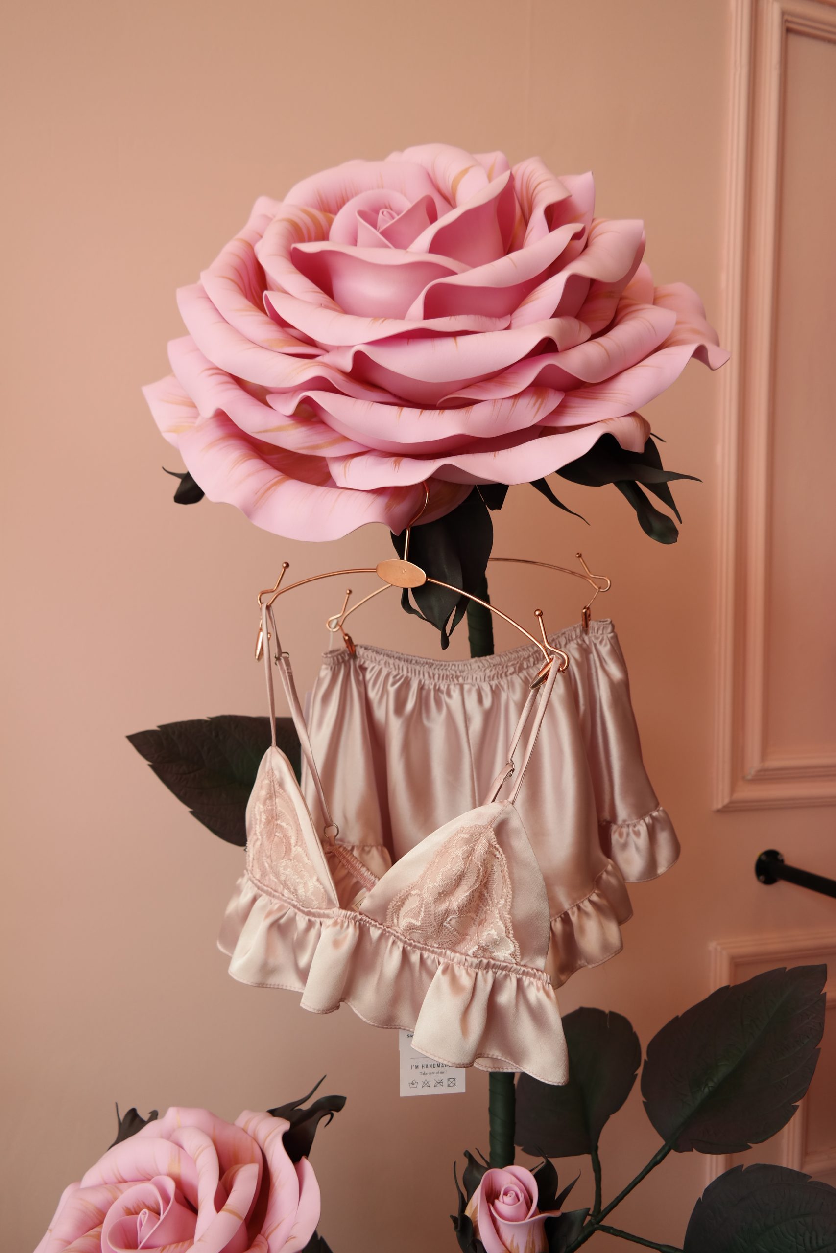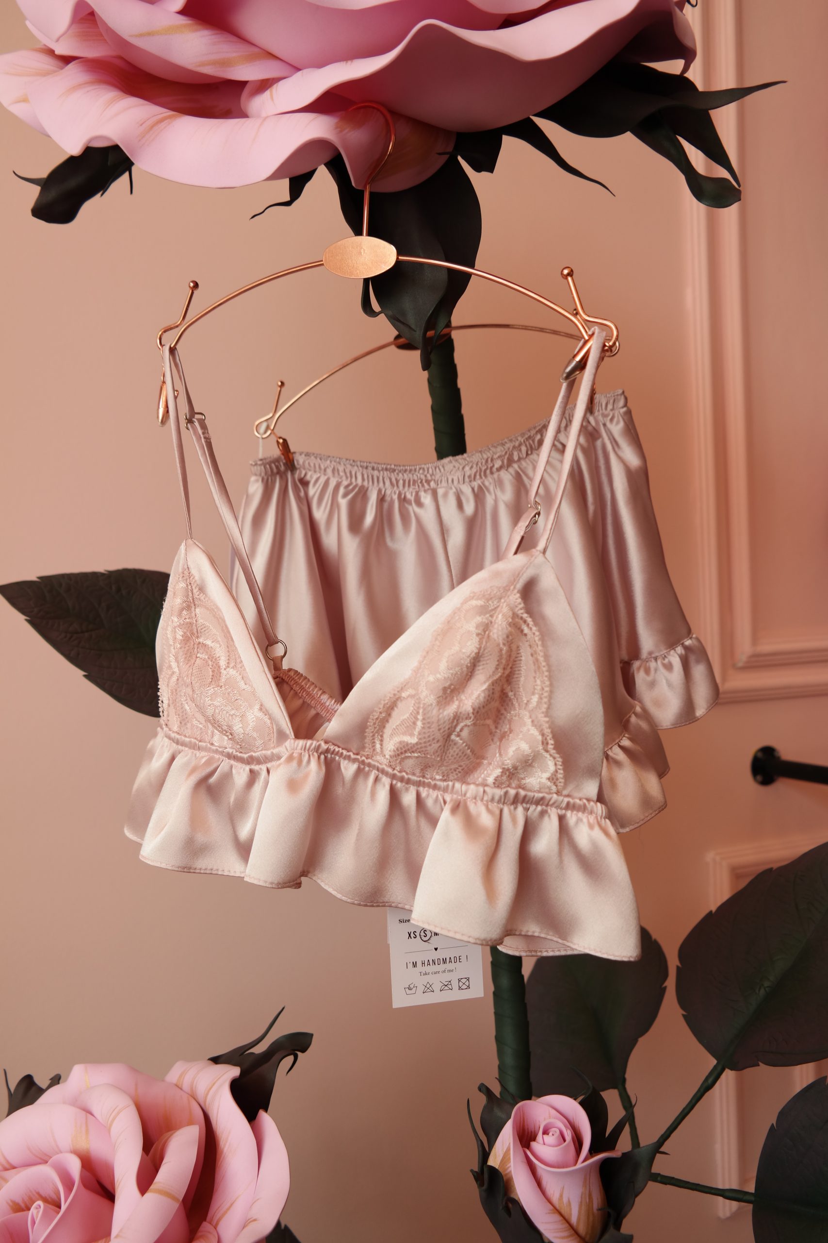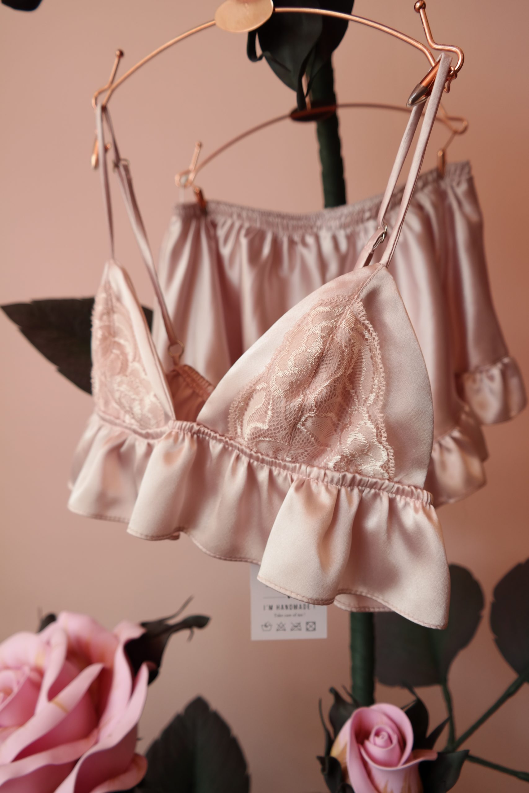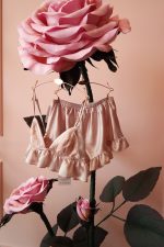 Özel tasarım, saten, dantel detaylı bralet ve fırfırlı pijama takımı. Oversize kesimi ile şıklığı ve rahatlığı bir arada yaşayın.