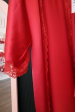 Özel tasarım kırmızı ipeksi saten, fransız dantel kol ve yaka detaylı el işçiliği sabahlık.