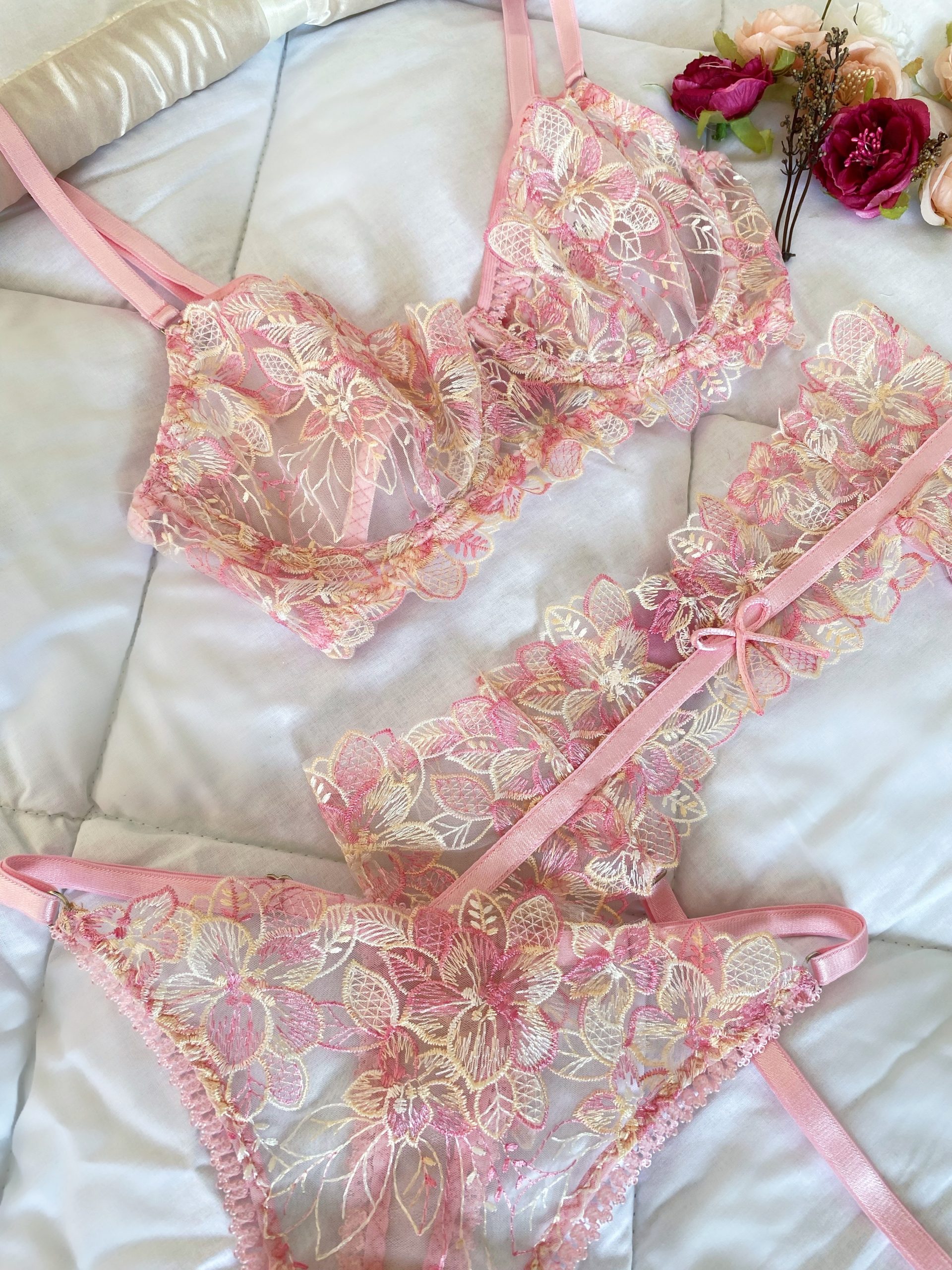 - Çiçek nakışlı dantel
