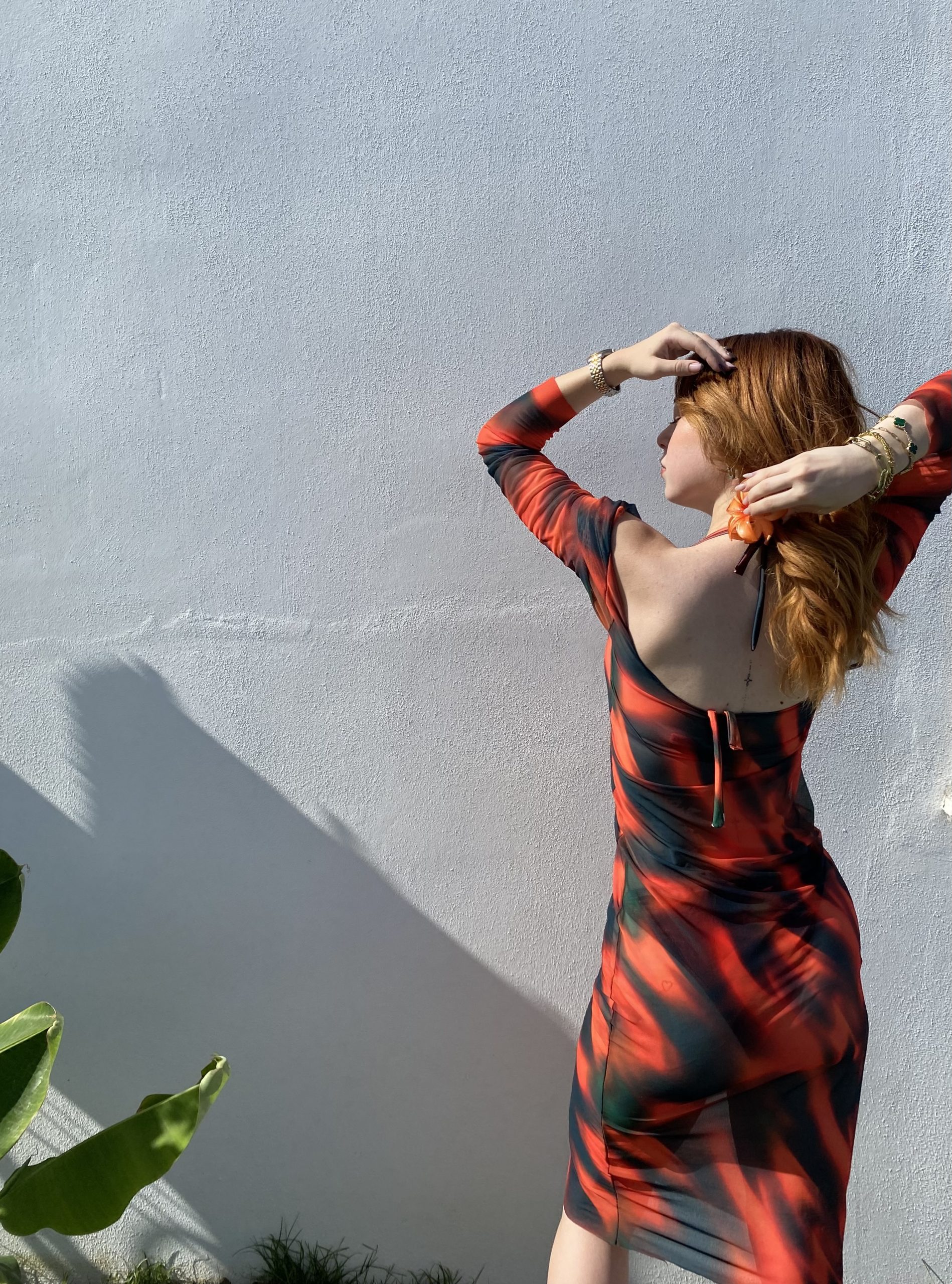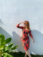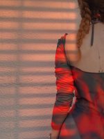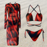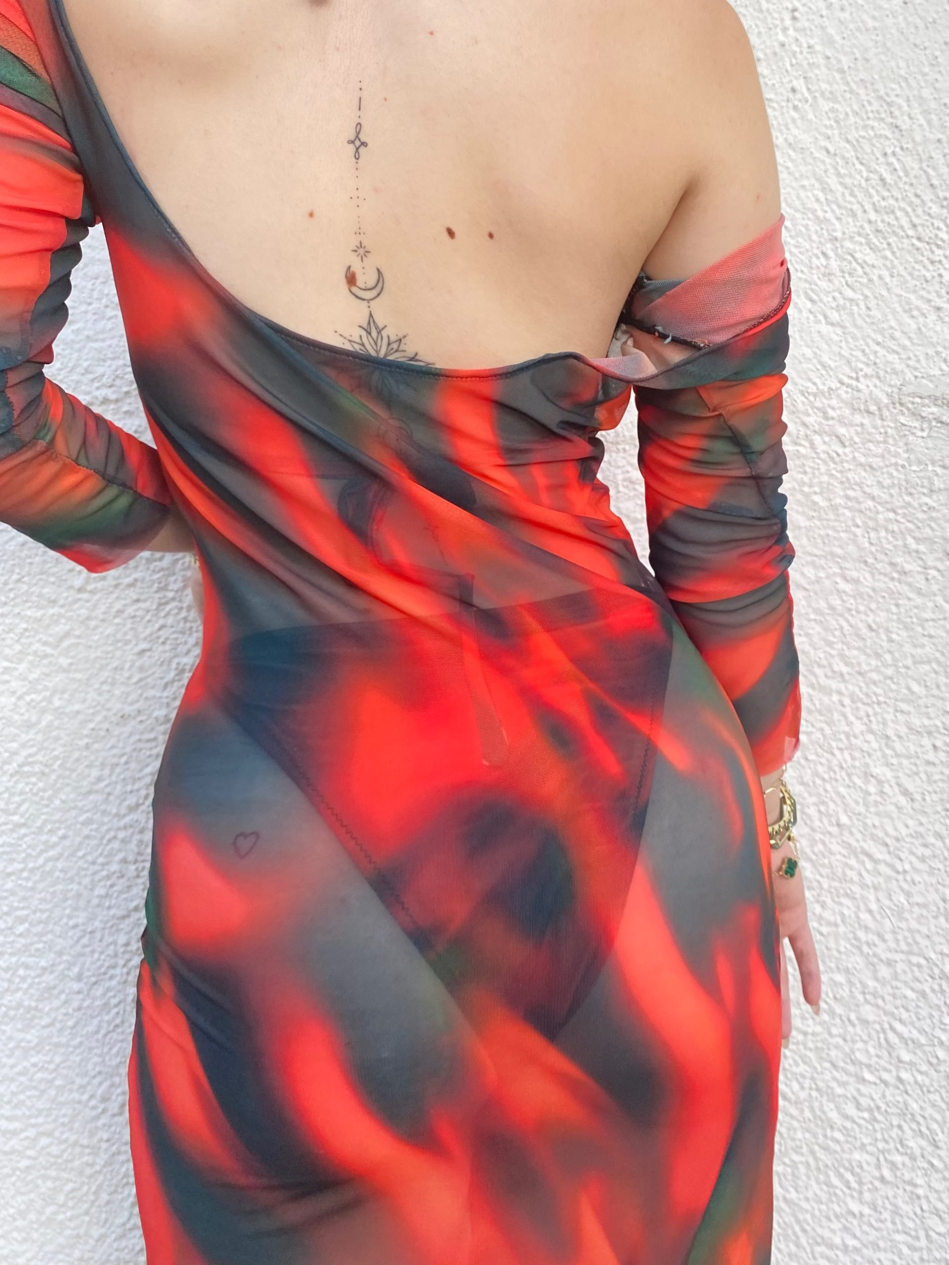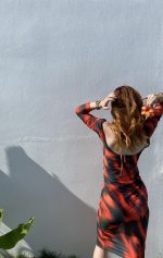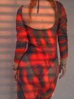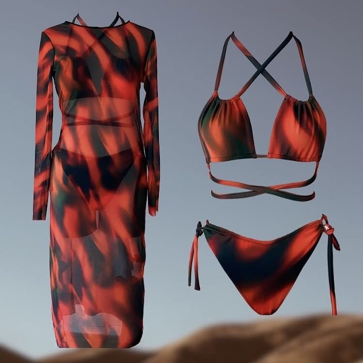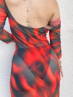 Özel tasarım transparan baskılı tül plaj elbisesi.