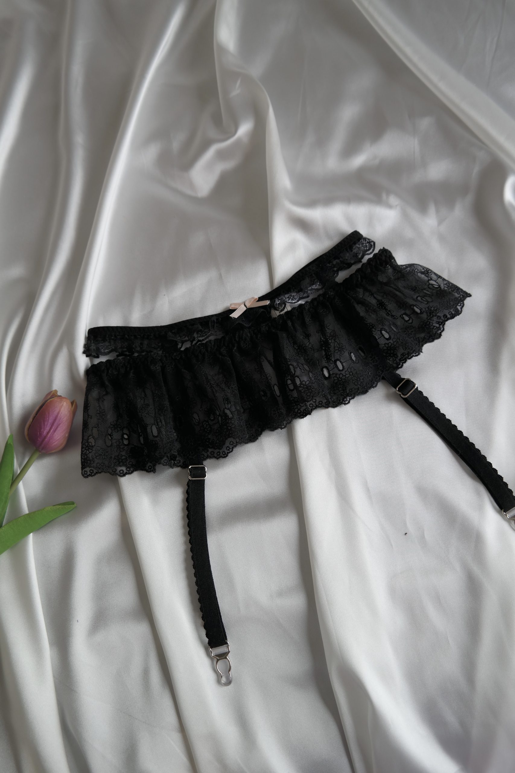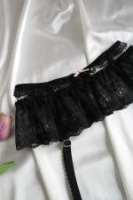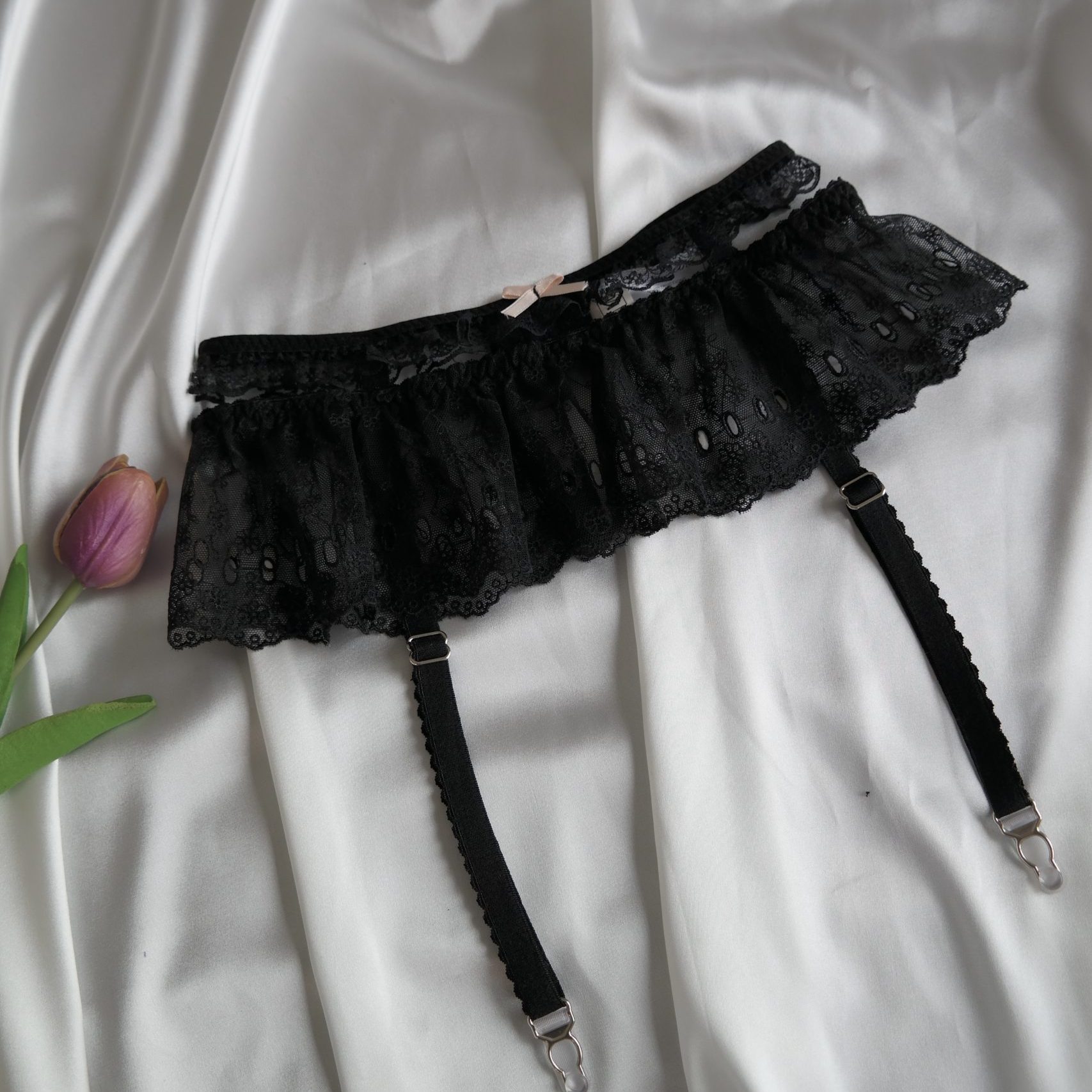 Siyah fisto dantel ve pudra kurdele detaylı dantel şeritli özel tasarım bralet.Siyah fisto dantel ve pudra kurdele detaylı dantel şeritli özel tasarım jartiyer.